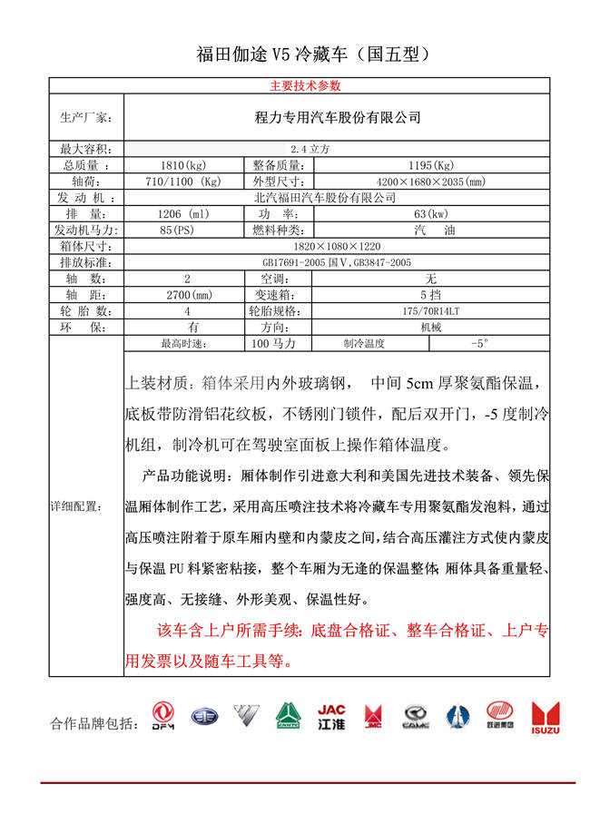 福田伽途V5面包冷藏車